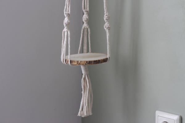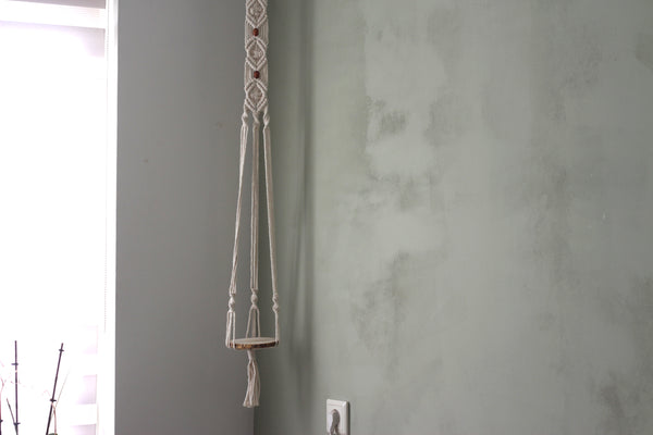 Cozy Macramé Plant Hanger – Wooden Platform with White Rope