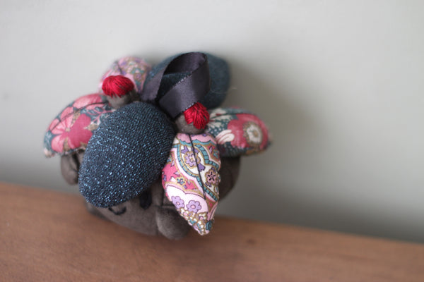 Wiploms are made out of polyester filling and local fabrics. When dirty please try to gently handwash as they are afraid of washing machines and dry cleaners. A small plom is approximately 10x10x10 cm. Keep in mind that adopting a resident comes with high responsibility. They need love and care! The resident comes without attributes such as the plantpot.