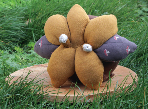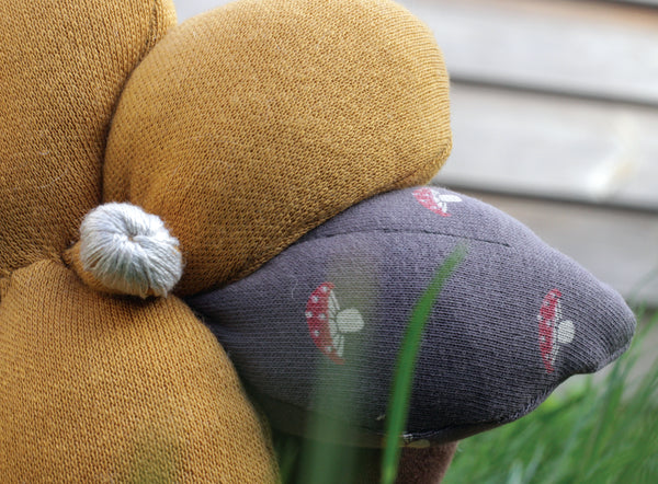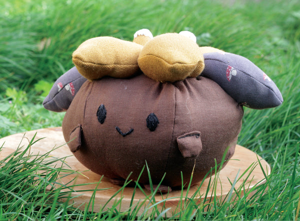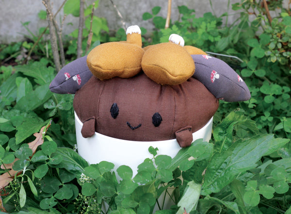 Auploms are made out of polyester filling and local second-handed fabrics. When dirty please try to gently handwash as they are afraid of washing machines and dry cleaners. A regular plom is approximately 22x22x22 cm. Keep in mind that adopting a resident comes with high responsibility. They need love and care! The resident comes without attributes such as the plantpot.