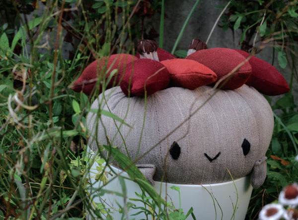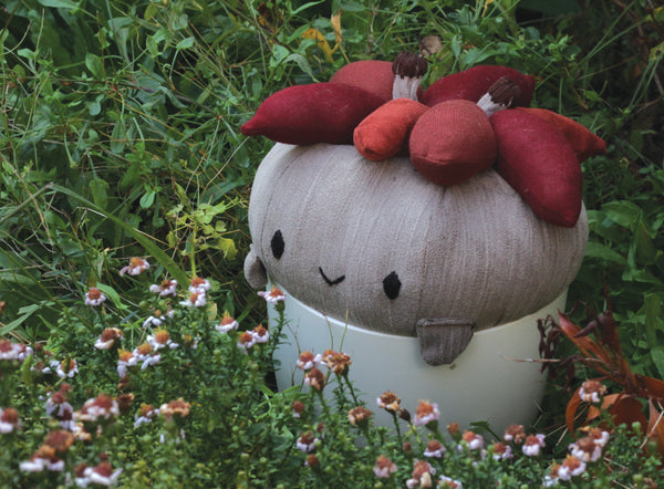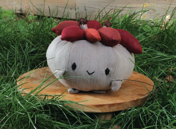 Auploms are made out of polyester filling and local second-handed fabrics. When dirty please try to gently handwash as they are afraid of washing machines and dry cleaners. A regular plom is approximately 22x22x22 cm. Keep in mind that adopting a resident comes with high responsibility. They need love and care! The resident comes without attributes such as the plantpot.