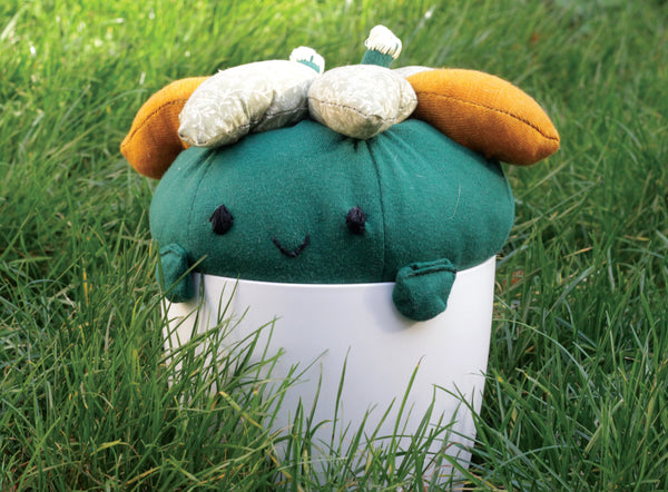 Springploms are made out of polyester filling and local second-handed fabrics. When dirty please try to gently handwash as they are afraid of washing machines and dry cleaners. A regular plom is approximately 22x22x22 cm. Keep in mind that adopting a resident comes with high responsibility. They need love and care! The resident comes without attributes such as the plantpot.
